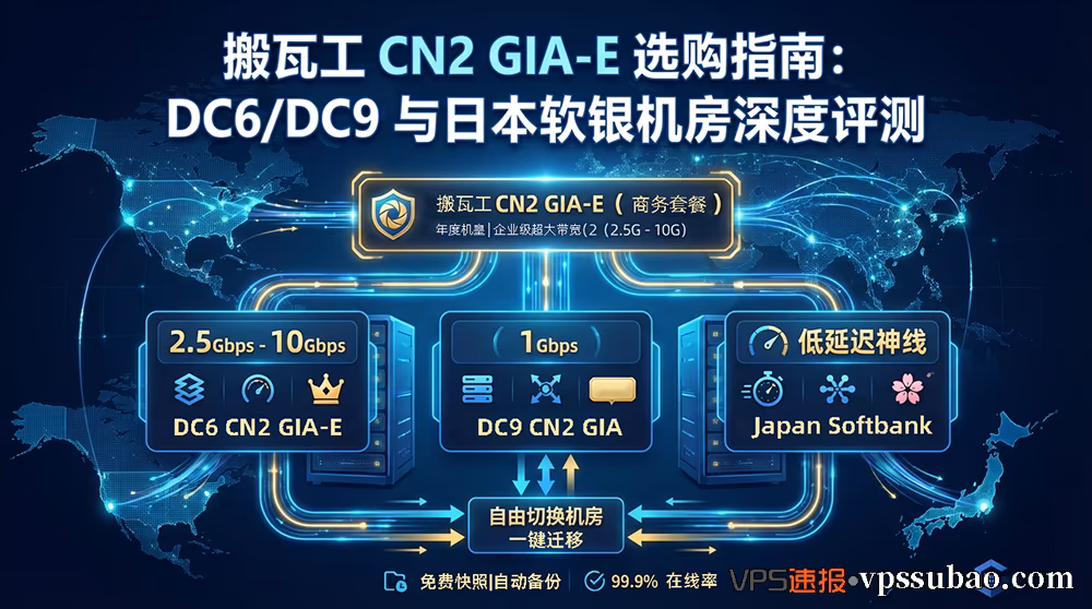 搬瓦工 CN2 GIA-E 套餐三大顶级机房(DC6、DC9、日本软银)的核心特点对比与选购建议